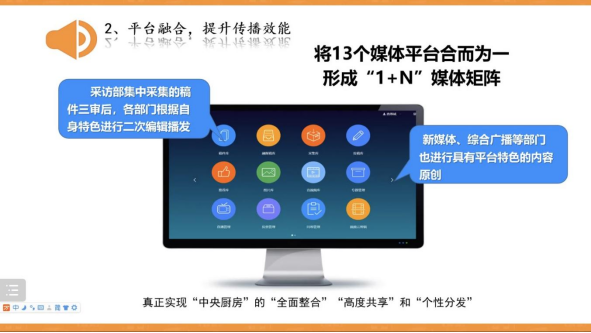 醴陵市融媒体中心的融合之处不仅体现在管理体制,还体现在平台融合之上。醴陵市融媒体中心将13个媒体平台合而为一,形成“1+N”媒体矩阵,真正实现“中央厨房”的“全面整合”和“个性分发”